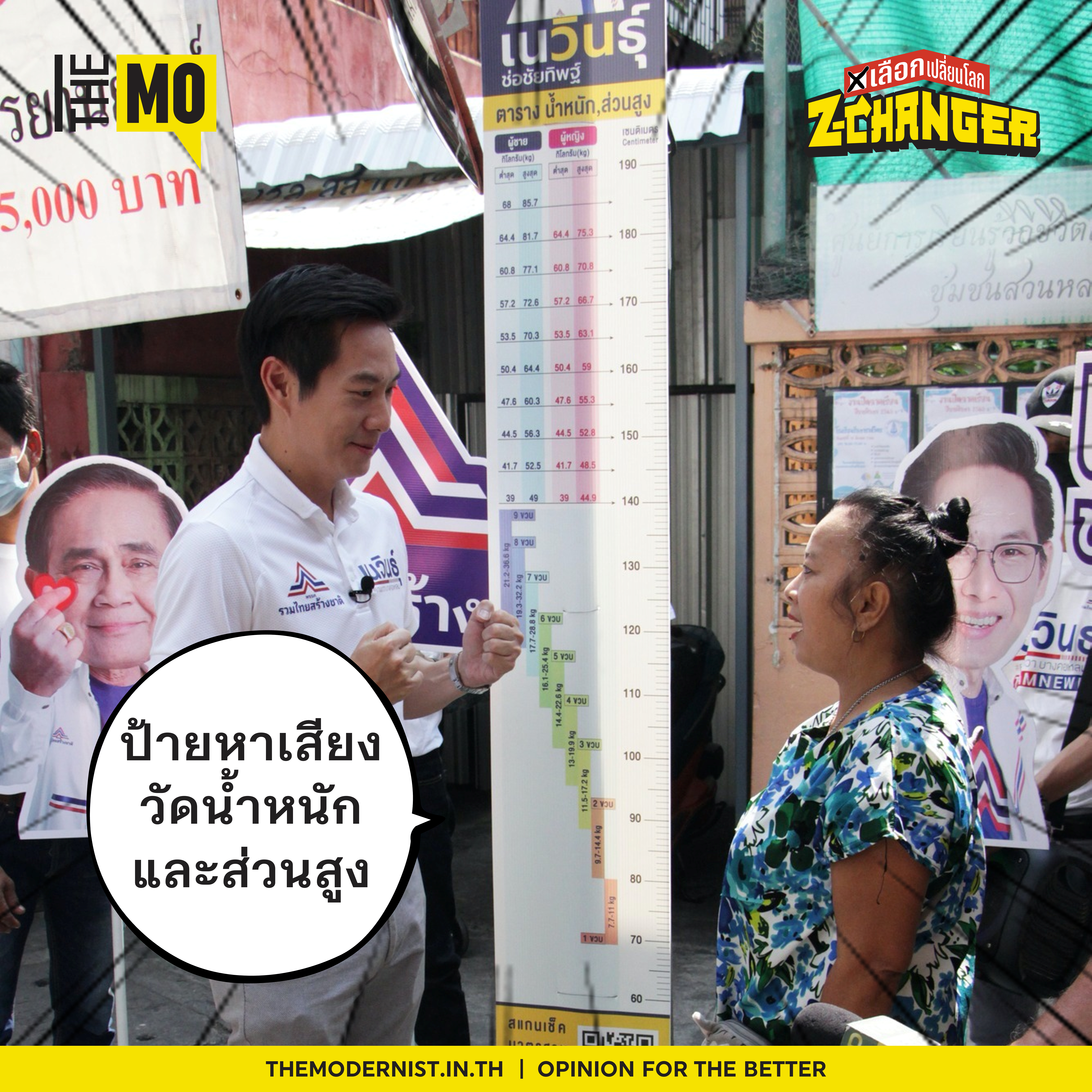 ป้ายหาเสียงแทรกตารางมาตรฐานน้ำหนักและส่วนสูง – เนวินธุ์ ช่อชัยทิพฐ์ ผู้สมัคร ส.ส. พรรครวมไทยสร้างชาติ กรุงเทพฯ เขต 3