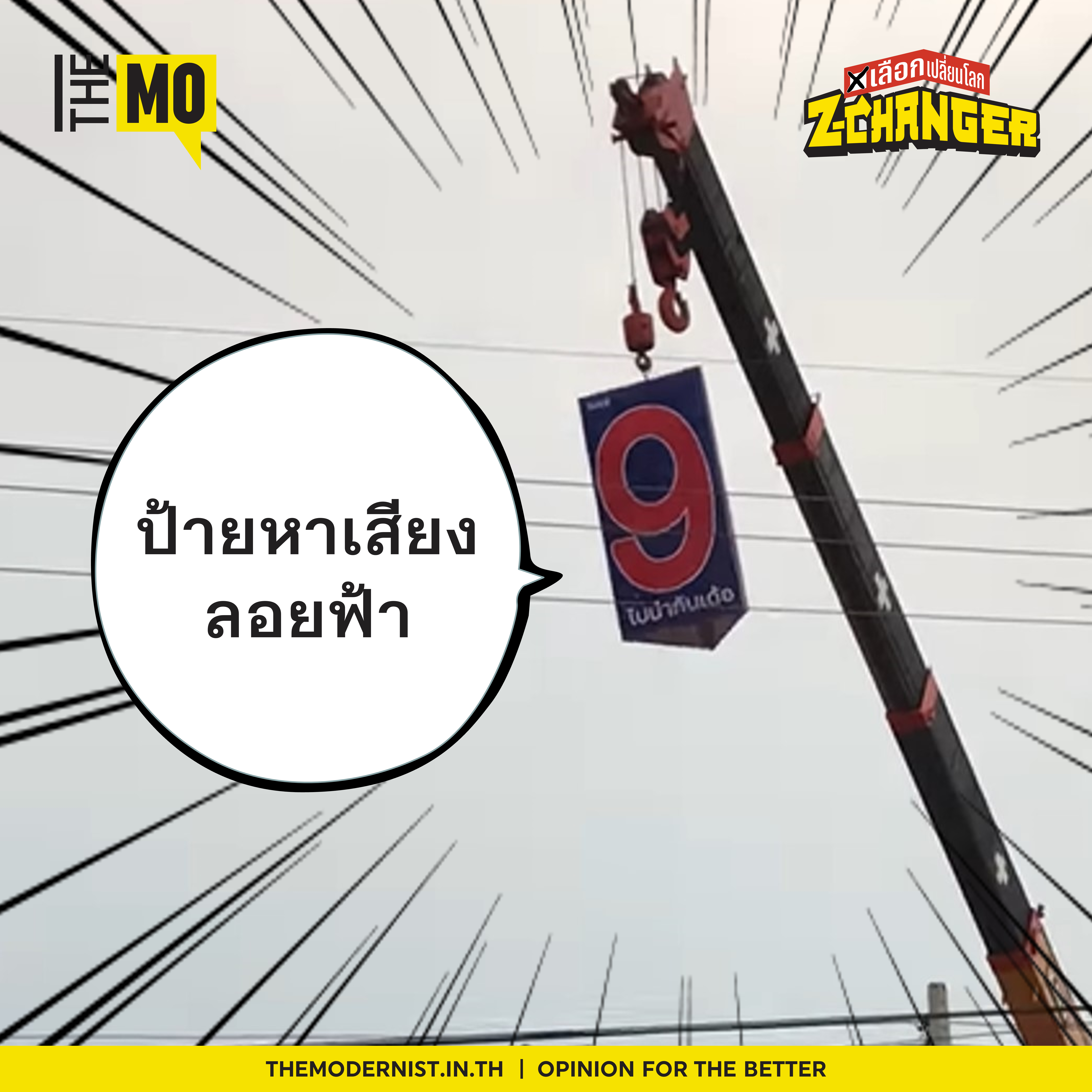 ติดป้ายหาเสียงข้างทางมันเกะกะ รกหูรกตา ผู้สมัคร ส.ส. พรรคไทยสร้างไทย จังหวัดยโสธร อย่าง ‘วรายุทธ จงอักษร’ ผู้สมัครที่ตั้งใจเข้ามาแก้ปัญหาให้คนในท้องถิ่นได้มีคุณภาพชีวิตที่ดีขึ้น จึงเลือกวางป้ายหาเสียงไว้ในที่ที่ไม่บดบังสายตาผู้คน ด้วยการวางไว้บนอากาศ โดยการเอาเชือกมามัดเข้ากับป้ายที่ติดเป็นสามเหลี่ยม แล้วขึ้นไปโหนด้วยเครนท้าทายสายตาผู้คนที่ผ่านไปผ่านมาให้หยิบกล้องขึ้นมาถ่าย